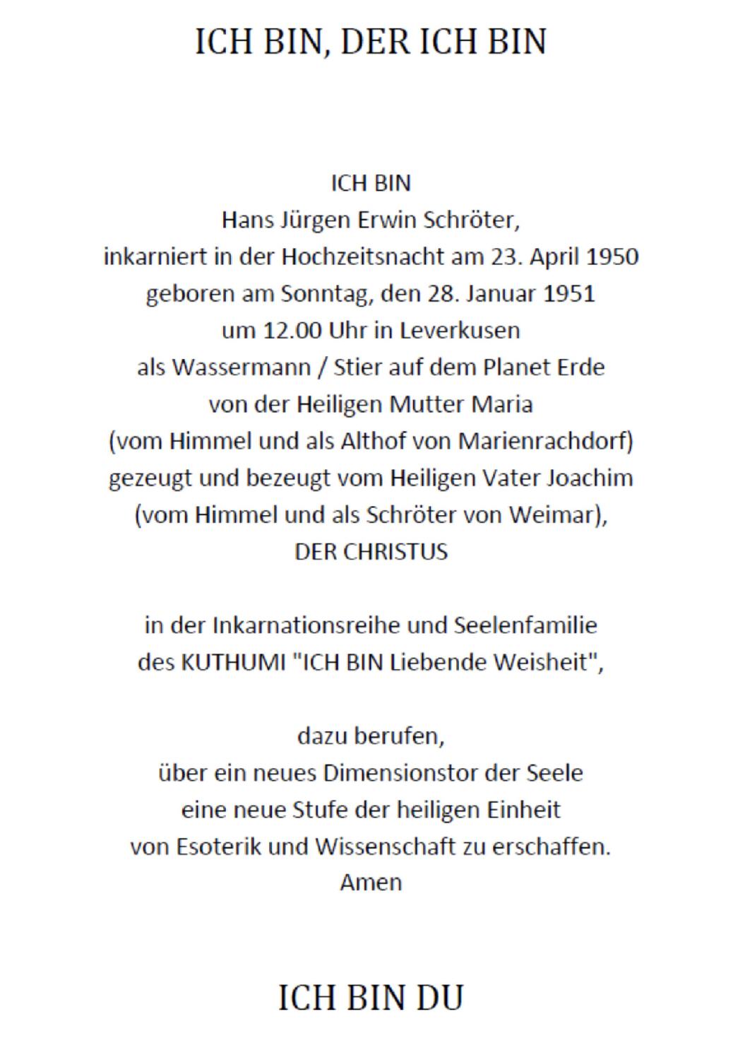 Und am Samstag, den 19. 08.2017, schrieb ich dann in mein Tagebuch die Deklaration "Ich bin, der ich bin - ich bin du". Ich war von dem, was sich da schrieb, selbst erschrocken. DER CHRISTUS??! Es war zunächst ja nur eine intime Deklaration für mein Tagebuch. Doch es veränderte ALLES in meinem Leben. Die Zeit ist nun offensichtlich reif, meine Antwort mit der Aufschaltung meiner MYSTERIENSCHULE.ONE auch öffentlich zu deklarieren. Dafür ist das Internet doch da, oder?